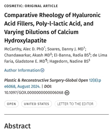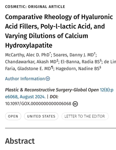 Comparative Rheology of Hyaluronic Acid Fillers, Poly-l-lactic Acid, and Varying Dilutions of Calcium Hydroxylapatite