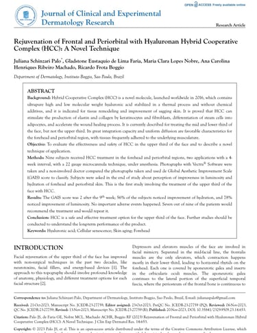 Rejuvenation of Frontal and Periorbital with Hyaluronan Hybrid Cooperative Complex (HCC): A Novel Technique